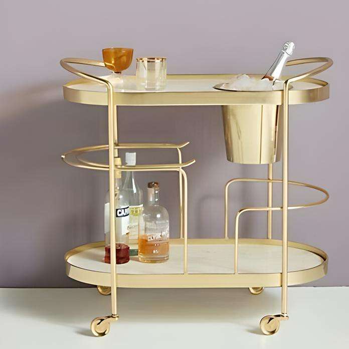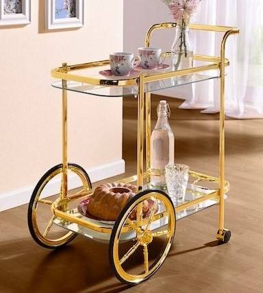 รถเข็นบาร์เคลือบทองสไตล์ร่วมสมัย โครงเหล็ก ชั้นวางกระจก พร้อมล้อเลื่อน สำหรับบาร์ในบ้าน ตกแต่งห้องครัว ตกแต่งโรงแรม ตกแต่งบ้าน