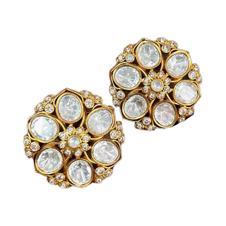 ต่างหูเม็ดกลมมออิสซาไนต์ชุบทองร่วมสมัยเครื่องประดับทันสมัยทันสมัยสำหรับงานปาร์ตี้ที่ทำจากทองเหลือง