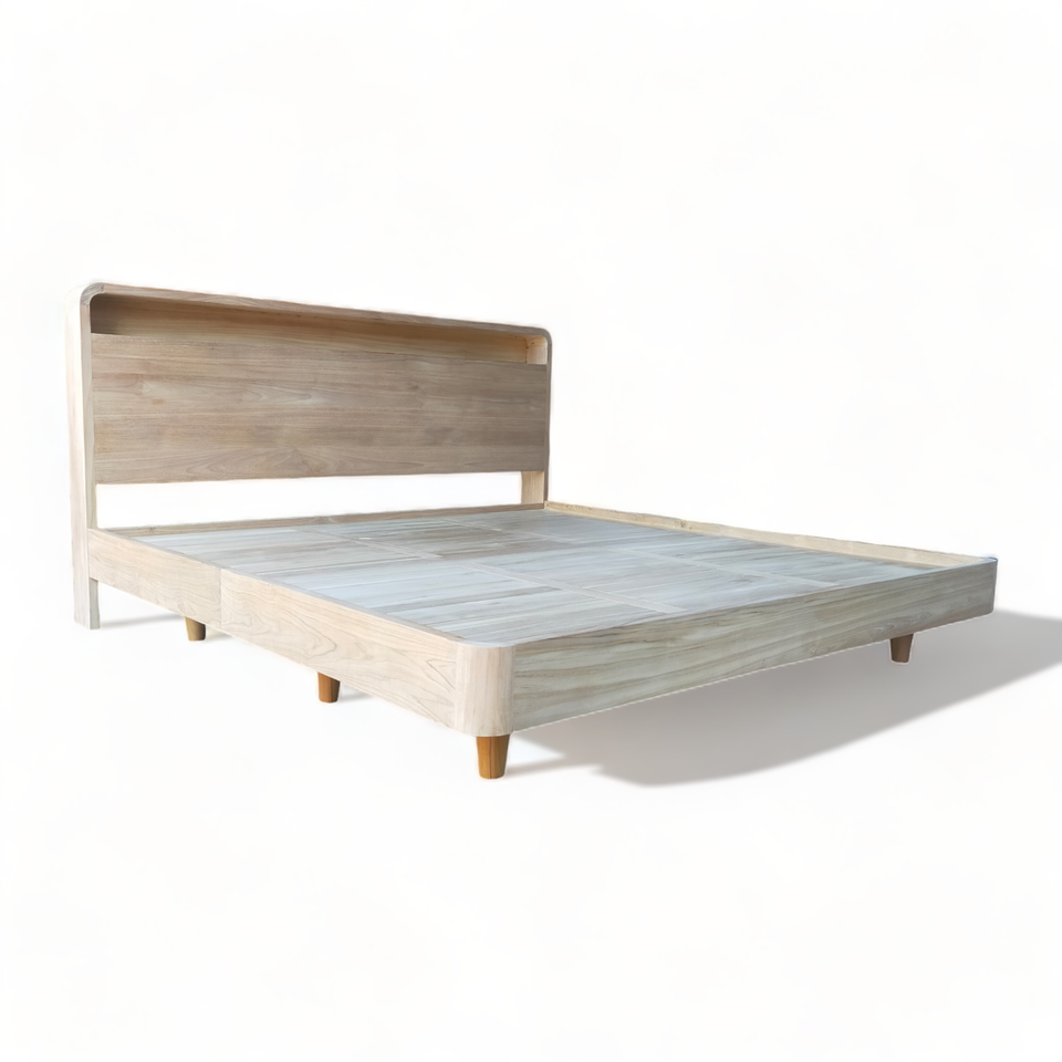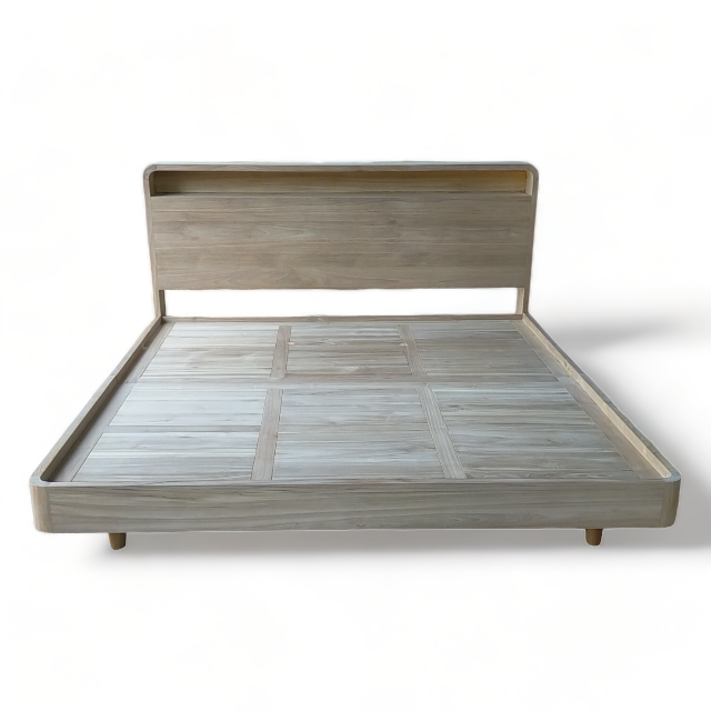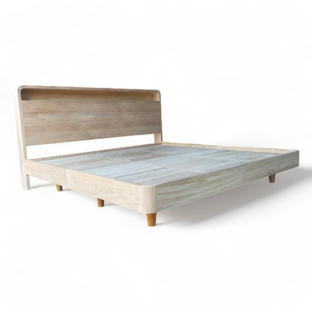 Contemporary Home Bedroom Furniture with Wood Frame and Slat Based Luxury Solid Teak Wood King Size Bed Double Wooden Beds