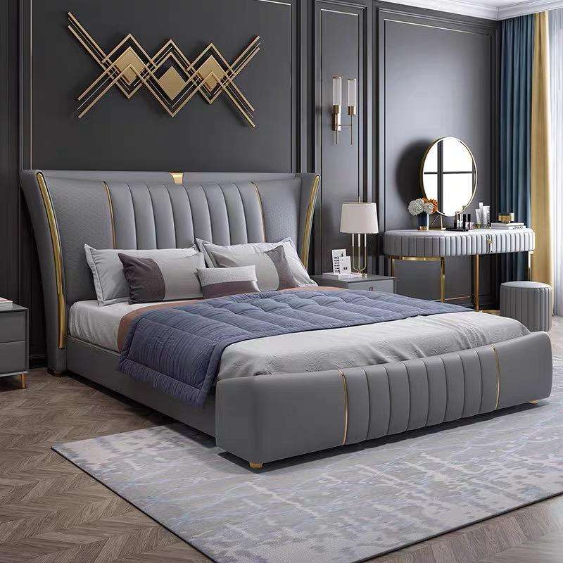 เตียงขนาดควีนไซส์สไตล์อิตาเลียนร่วมสมัยดีไซน์หรูหราแบบยุโรปหุ้มเบาะนุ่มเก็บของเฟอร์นิเจอร์ห้องนอนที่เป็นมิตรสะดวกสบาย