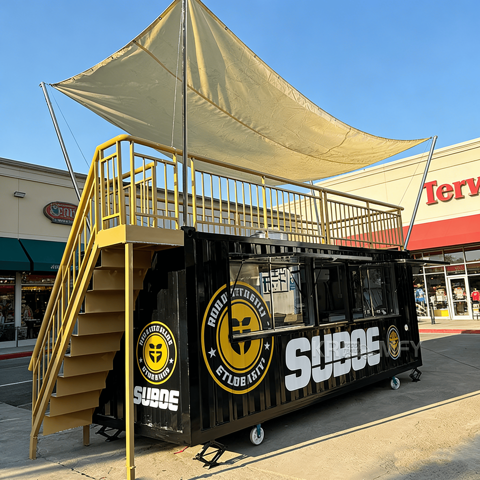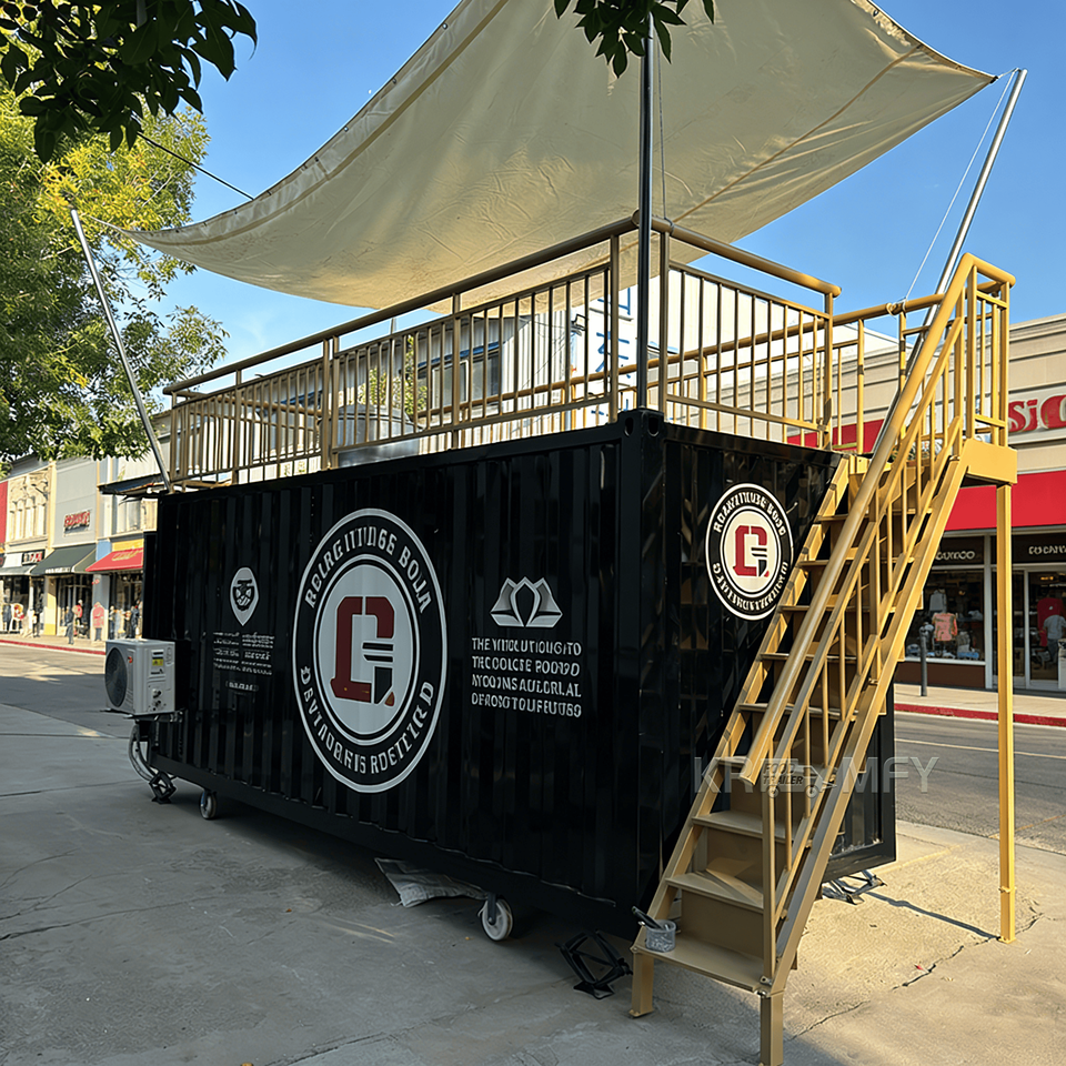 ร้านกาแฟคาเฟ่ร้านอาหารสไตล์ร่วมสมัยในตู้คอนเทนเนอร์ พร้อมดีไซน์แข็งแรงทนทานและใช้พื้นที่ได้อย่างมีประสิทธิภาพ