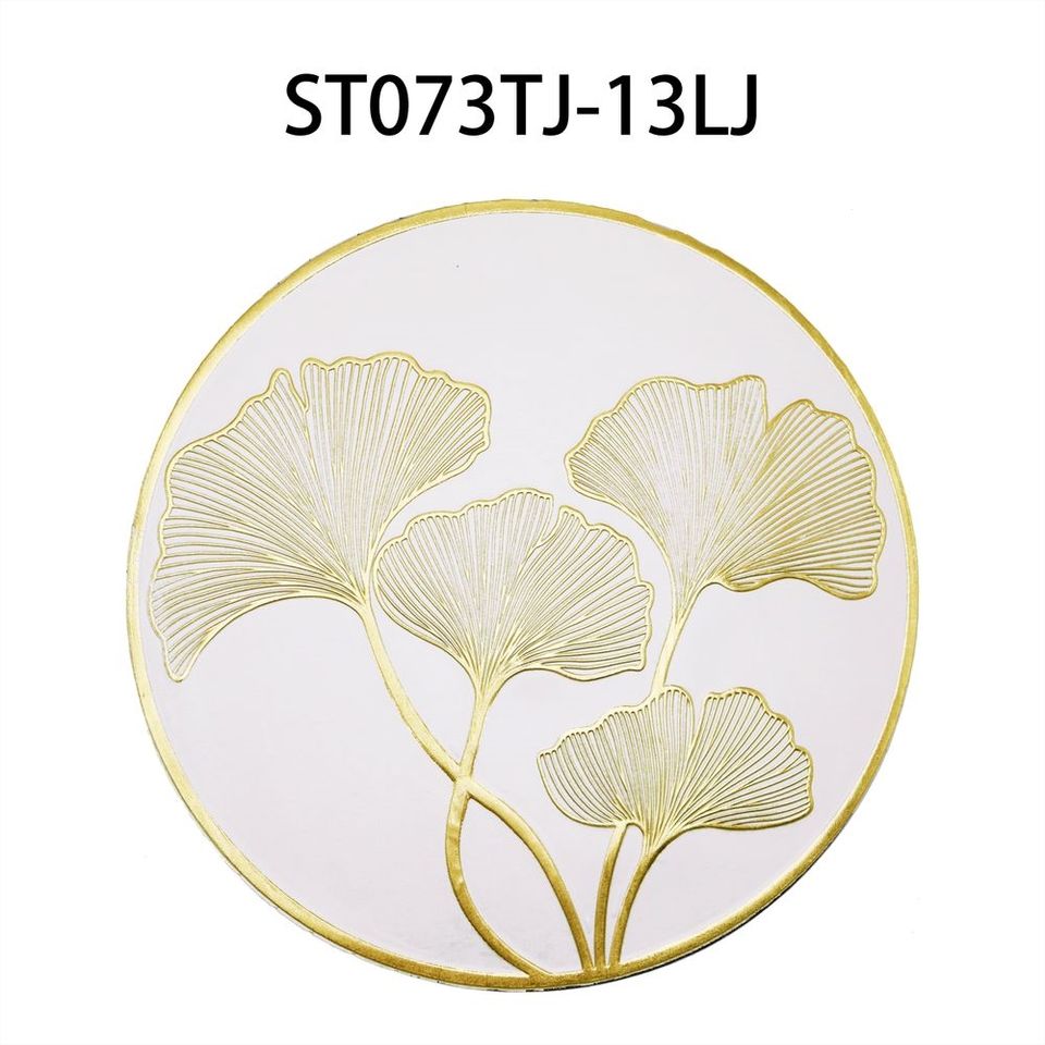แผ่นรองจานพีวีซีหลากสีเป็นมิตรต่อสิ่งแวดล้อมขนาดกลาง38ซม. หลากสีดีไซน์หรูหราร่วมสมัยสำหรับใช้ในบ้านและร้านอาหาร