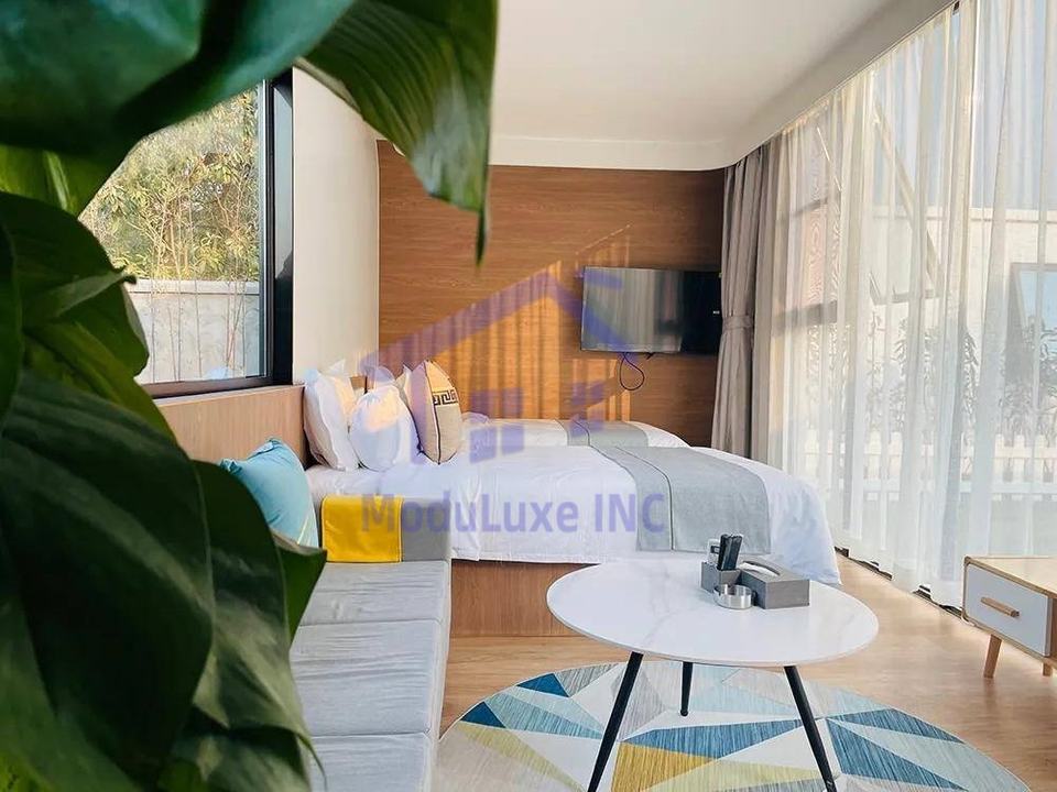 อพาร์ทเมนต์โครงสร้างเหล็กดีไซน์ทันสมัยหรูหราร่วมสมัยกันน้ำได้สำหรับสถานที่ท่องเที่ยวกลางแจ้ง
