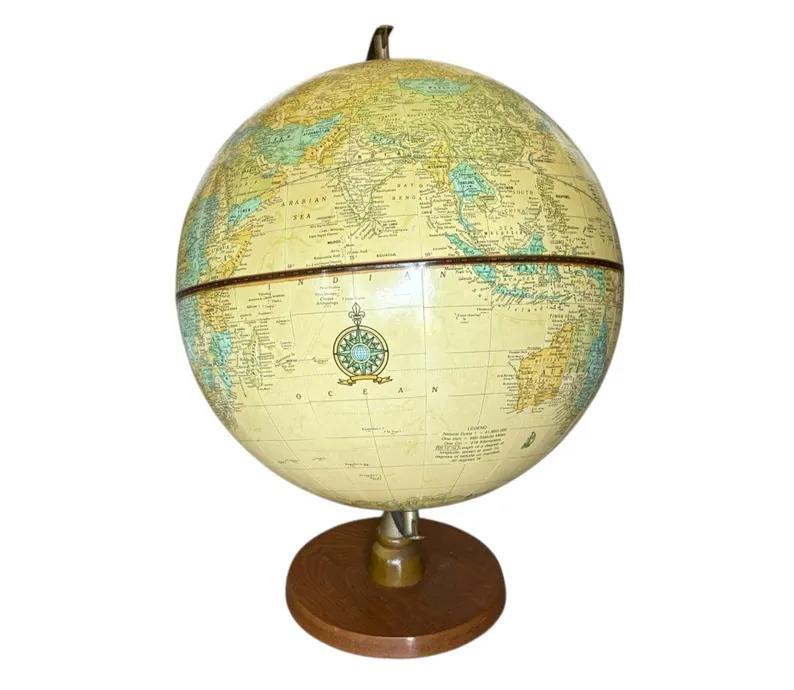 ลูกโลกโลหะสไตล์ร่วมสมัยพร้อมแผ่นดินที่เคลือบผิวแบบซาตินและฐานโครเมียมทรงเรียบหรูสำหรับสตูดิโอสมัยใหม่
