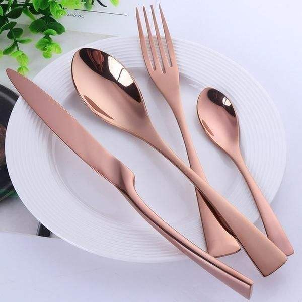 ชุดช้อนส้อมโลหะทันสมัยสำหรับชุดอาหารค่ำ ชุดช้อนส้อมโลหะหรูหรา