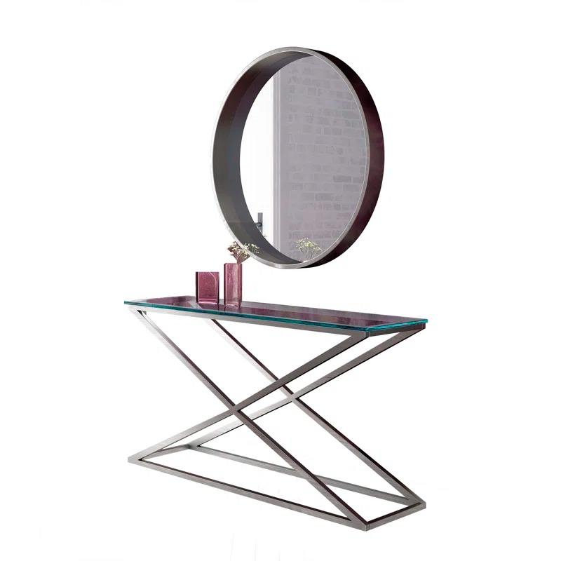 โต๊ะวางของในโถงทางเข้าสไตล์โมเดิร์นร่วมสมัย พร้อมท็อปกระจกเงาแบบปรับเปลี่ยนได้ โครงเหล็กสีเงินขัดเงา