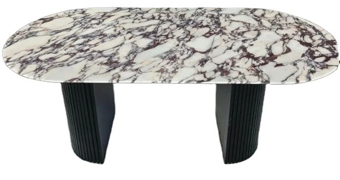 โต๊ะรับประทานอาหารทรงรีหินอ่อนธรรมชาติร่วมสมัยเฟอร์นิเจอร์บ้านแบบพกพาพร้อมฐานไม้ห้องรับประทานอาหารเฟอร์นิเจอร์หิน