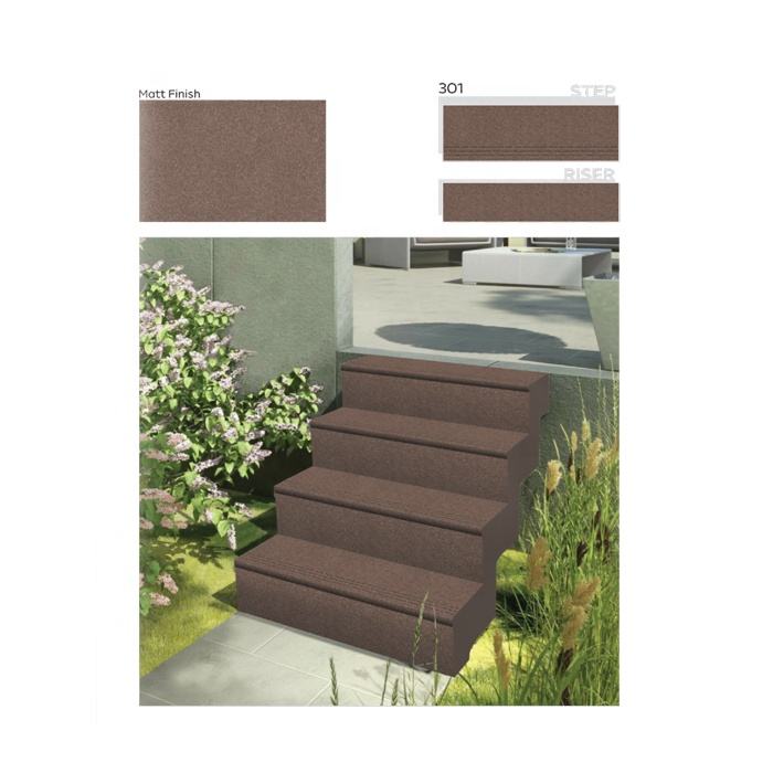 กระเบื้องบันไดพอร์ซเลนในร่มแบบกันลื่นร่วมสมัยกระเบื้องปูพื้นเซรามิกเคลือบสำหรับตกแต่งเชิงพาณิชย์โซลูชันการออกแบบกราฟิก
