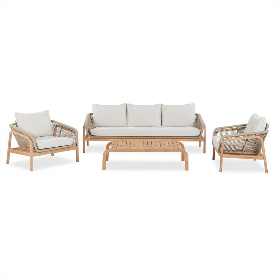 ชุดเฟอร์นิเจอร์กลางแจ้งร่วมสมัย3-Seater โซฟาไม้อะคาเซีย2ที่วางแขนโต๊ะกาแฟทนต่อสภาพอากาศ