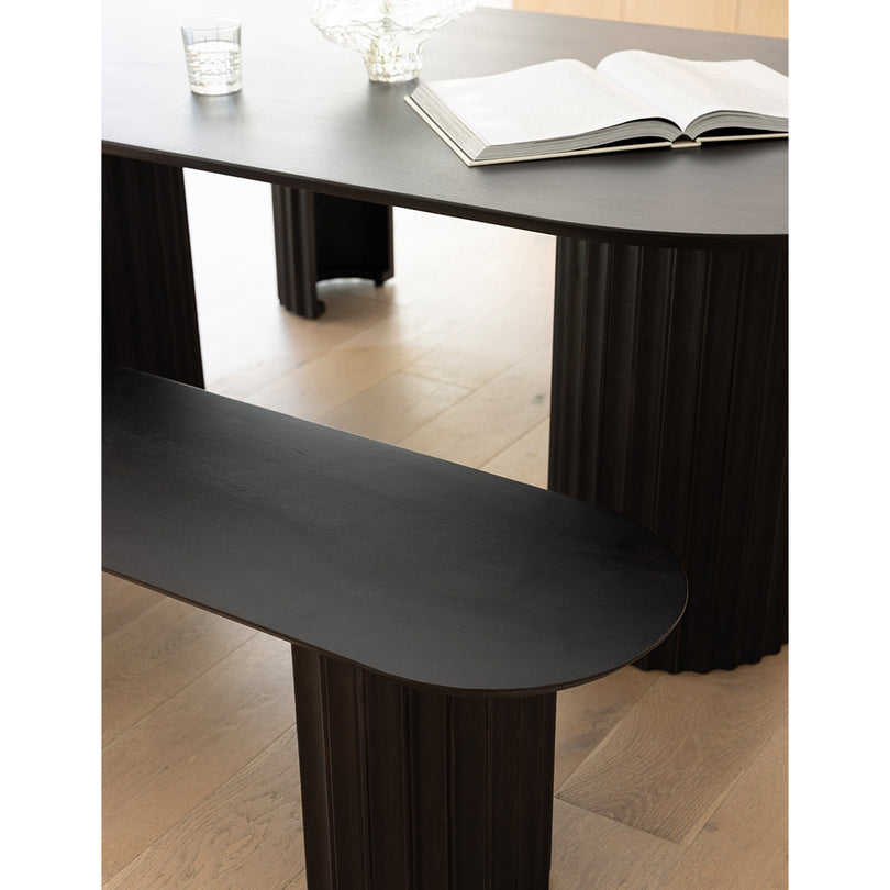 ชุดโต๊ะรับประทานอาหารทรงรีสไตล์ร่วมสมัยมีม้านั่งสองตัวเข้าคู่กันพื้นไม้สีดำและฐานยางสำหรับการตกแต่งภายในที่ทันสมัย