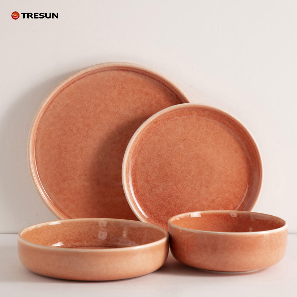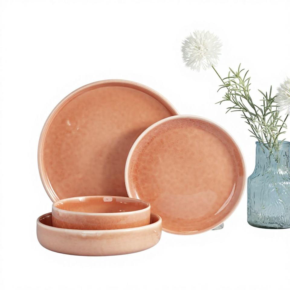 ชุดอาหารค่ำเซรามิกสไตล์รัสติกเคลือบแบบรีแอกทีฟ พร้อมพื้นผิวด้านและลายไม่สม่ำเสมอ 4 ชิ้น สำหรับการรับประทานอาหารอย่างหรูหรา
