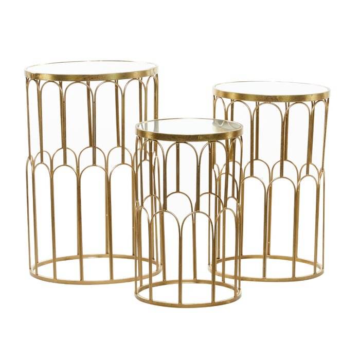 ชุดโต๊ะกาแฟโลหะทรงกลมแบบซ้อนได้ ดีไซน์ทันสมัย พร้อมการตกแต่งอย่างหรูหรา และสามารถวางซ้อนกันได้อย่างง่ายดาย ประหยัดพื้นที่