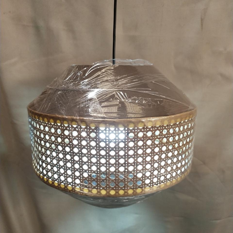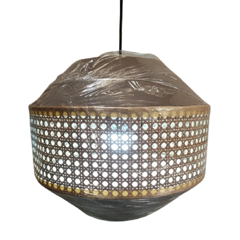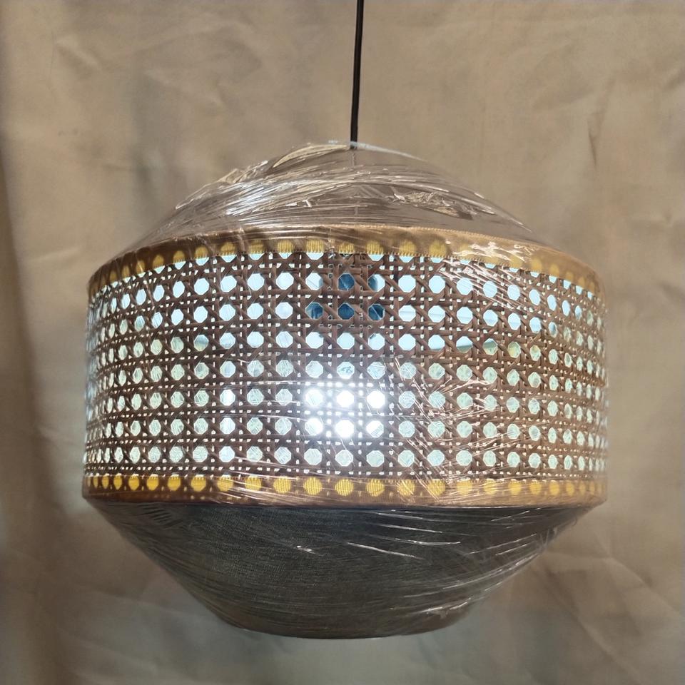 โคมไฟแขวนทรงกลมทันสมัยทำจากหวายและผ้าตาข่าย | โคมไฟแขวนทรงกลมทำจากหวายสานด้วยมือ | รูปทรงเรขาคณิตสร้างสรรค์