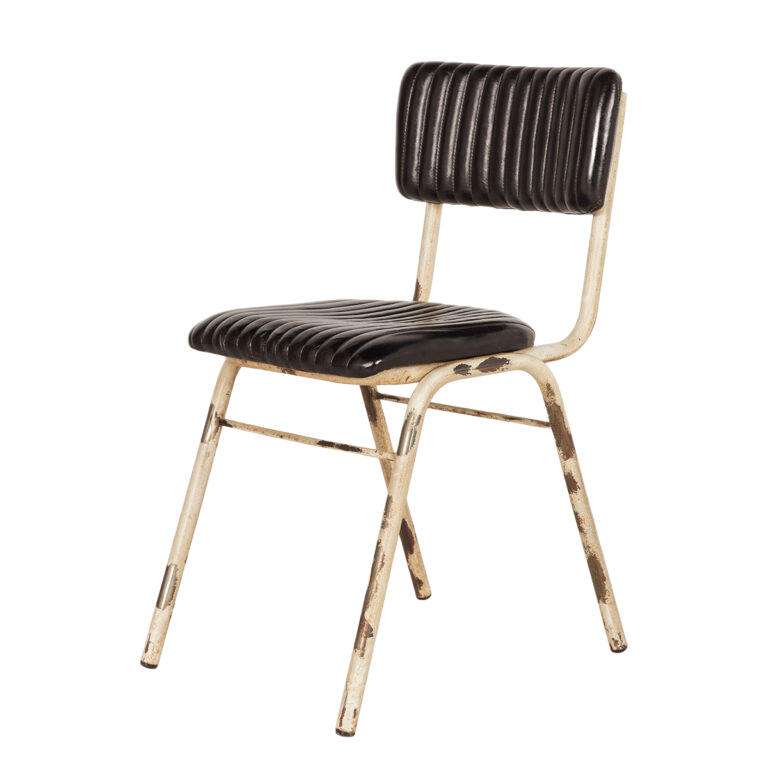เก้าอี้บิสโทรสไตล์รัสติกสมัยใหม่ ทำจากโลหะวินเทจและหนังแท้ พร้อมการตกแต่งแบบโบราณ สำหรับร้านกาแฟและร้านอาหาร