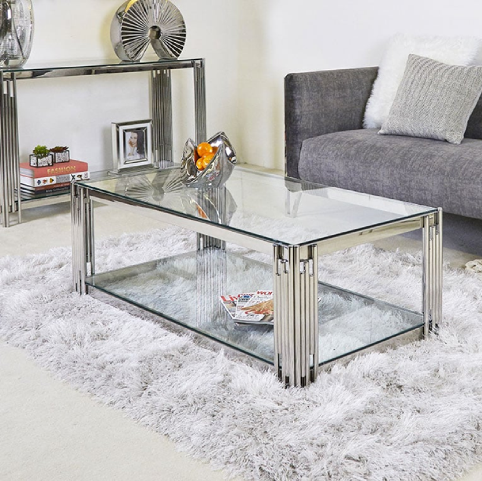 โต๊ะกาแฟทำจากสแตนเลสและแก้วสไตล์ร่วมสมัยกรอบกระจกด้านบนขายดี2021สำหรับห้องนั่งเล่น