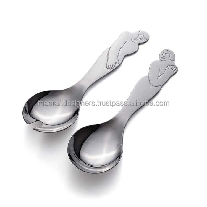 Contemporary Stainless Steel Salad Server Ideal For Modern Kitchens Seeking Sleek Practical Beautiful Food Serving Tools