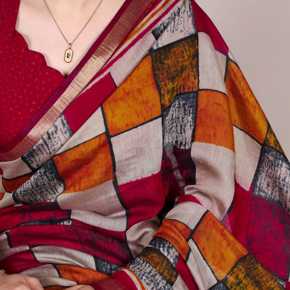 ชุดผ้าส่าหรีพิมพ์ลายขอบแนวร่วมสมัยผ้าโพลีเอสเตอร์ผ้าวิสคอส