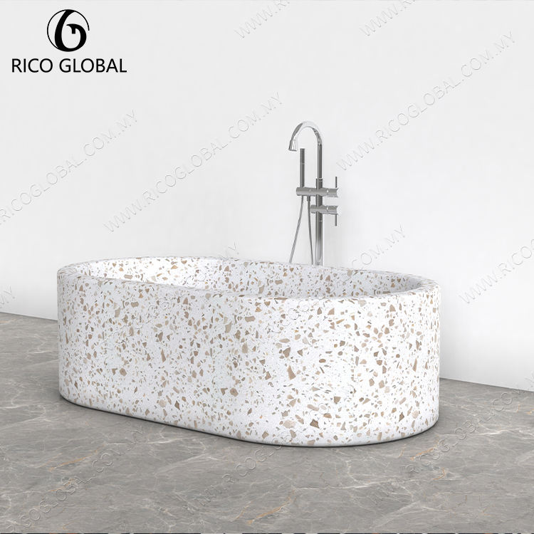 อ่างอาบน้ำทรงรีแบบตั้งพื้นสไตล์เทอร์ราซโซ่ร่วมสมัย สำหรับโรงแรมและวิลล่า รุ่น BT-137A
