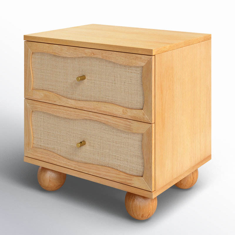 Contemporary Tourmaline Wood & Rattan Wavy Nightstand for Home Hotel Bedroom Furniture Stylish Addition to Any Apartment Setup