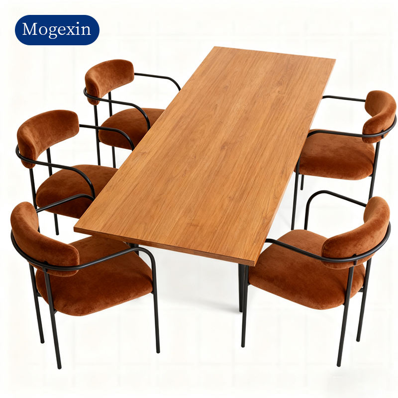 เก้าอี้รับประทานอาหารกำมะหยี่ร่วมสมัยพร้อมขาโลหะทรงท่อ ชุดห้องรับประทานอาหาร 4 ชิ้นสำหรับร้านอาหารโฮมออฟฟิศ