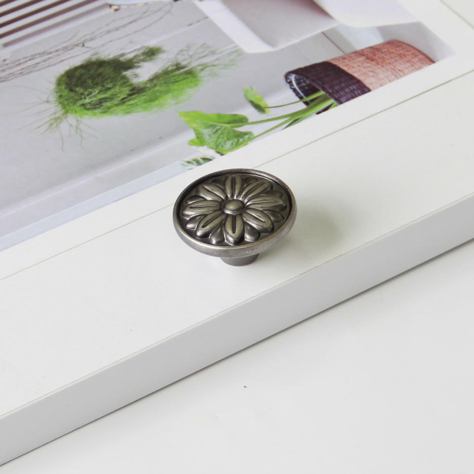 ตู้ลิ้นชักสไตล์วินเทจแบบดึงลิ้นชักโลหะผสมสังกะสีลายดอกไม้สำหรับห้องครัวห้องนั่งเล่นตู้เสื้อผ้าสไตล์ร่วมสมัย