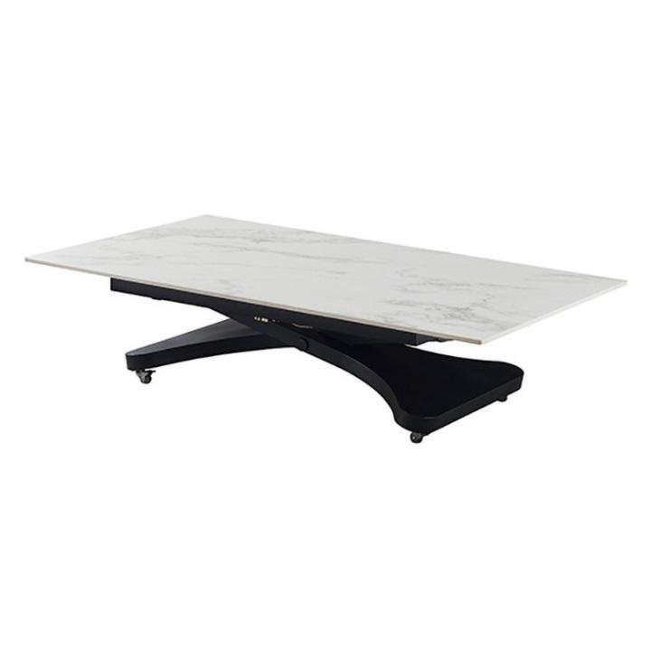 โต๊ะกาแฟสีขาวร่วมสมัยสำหรับห้องนั่งเล่นอพาร์ทเม้นพับได้ฐานโลหะทำจากหินปรับความสูงได้ทรงสี่เหลี่ยม