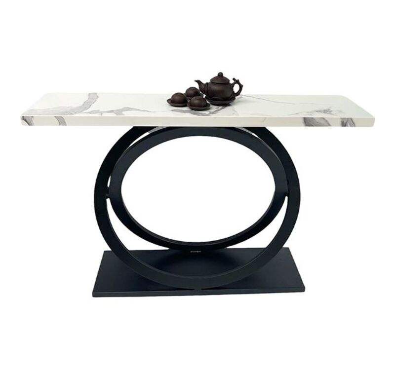โต๊ะกาแฟหินอ่อนสีขาวสไตล์ร่วมสมัยพร้อมฐานวงแหวนสแตนเลสสีดำสำหรับเฟอร์นิเจอร์ห้องนั่งเล่น