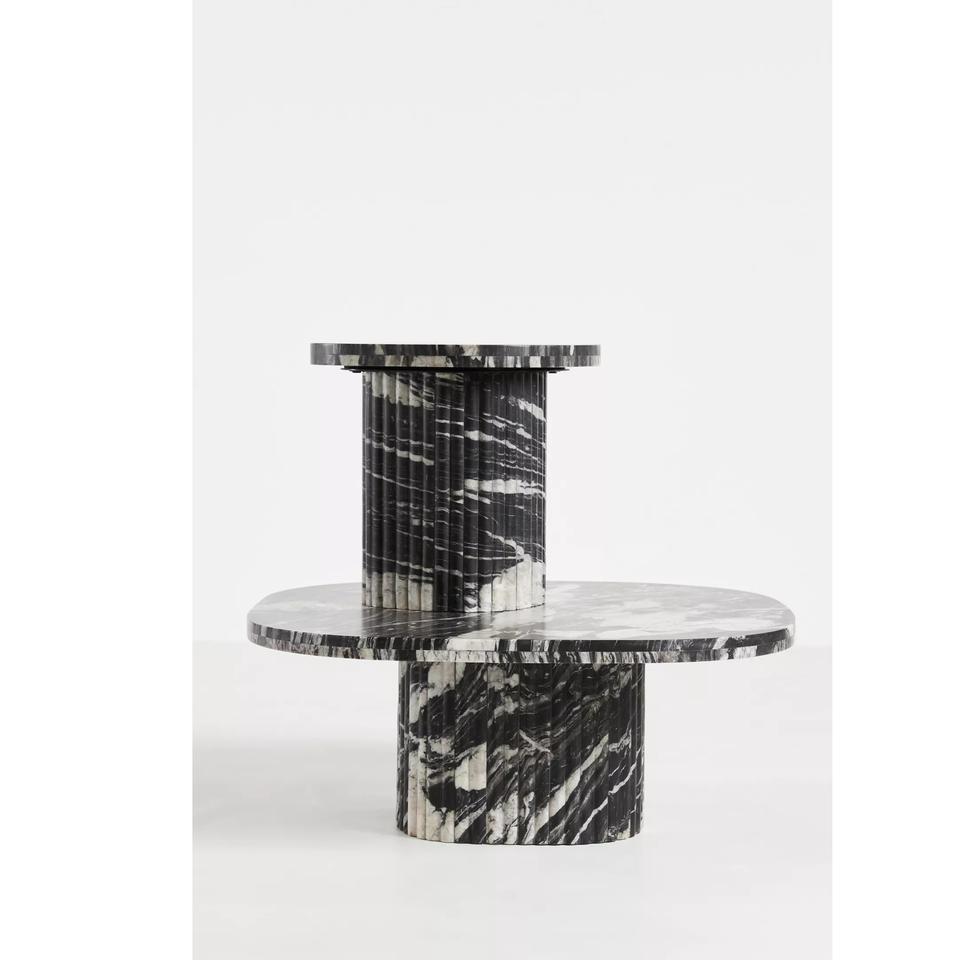 โต๊ะกาแฟหินอ่อนสีขาวสไตล์ร่วมสมัยโต๊ะสี่เหลี่ยมผืนผ้าระดับพรีเมี่ยมทนทานด้วยสำเนียงหินพื้นที่นั่งเล่นทันสมัยหินอ่อนมีสไตล์