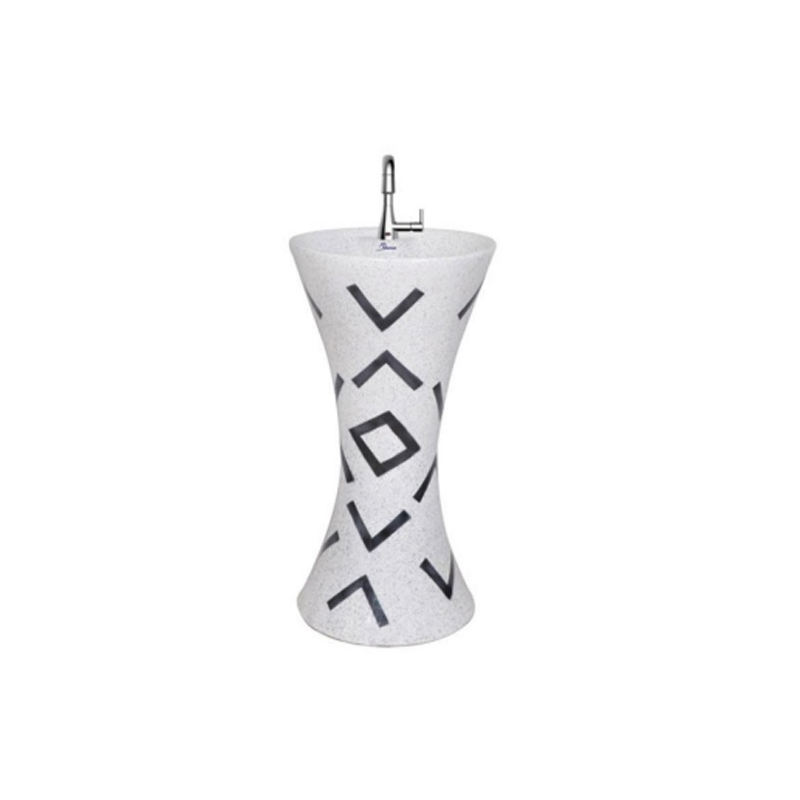 อ่างล้างหน้าทรงกลมแบบตั้งพื้นสไตล์ไม้ร่วมสมัยพร้อมก๊อกน้ำติดตั้งบนพื้นสำหรับโรงแรม อ่างเซรามิกตั้งพื้นสำหรับห้องน้ำ
