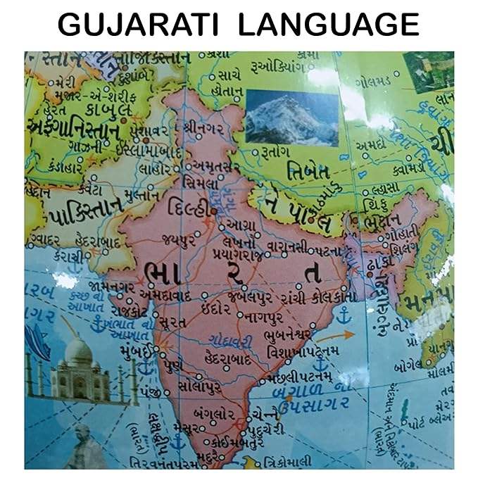 ลูกโลกจำลองร่วมสมัยพร้อมฐานตั้งแข็งแรง เหมาะสำหรับเด็ก นักเรียน ตกแต่งบ้านและสำนักงาน ภาษาเกจราตี