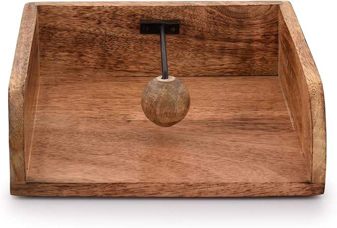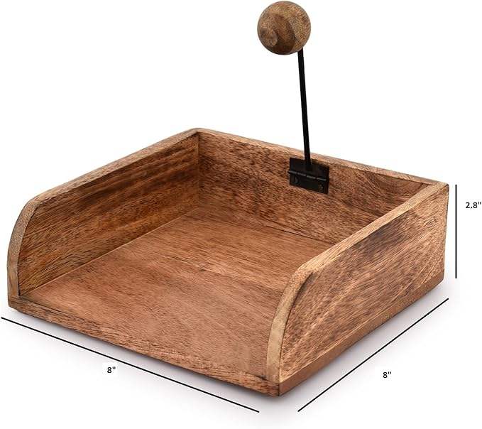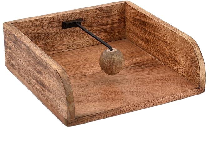 ที่ใส่กระดาษเช็ดปากทรงสี่เหลี่ยม ดีไซน์ไม้ พร้อมแกนกดสแตนเลส ลูกบอลไม้ทรงกลม ขนาดกะทัดรัด ตกแต่งโต๊ะ
