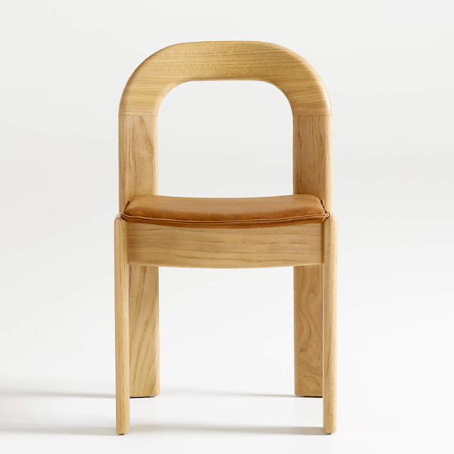 เก้าอี้รับประทานอาหารไม้เนื้อแข็งร่วมสมัยมีดีไซน์โค้งด้านหลังและเบาะหนังสำหรับร้านอาหารคาเฟ่และใช้ในบ้าน
