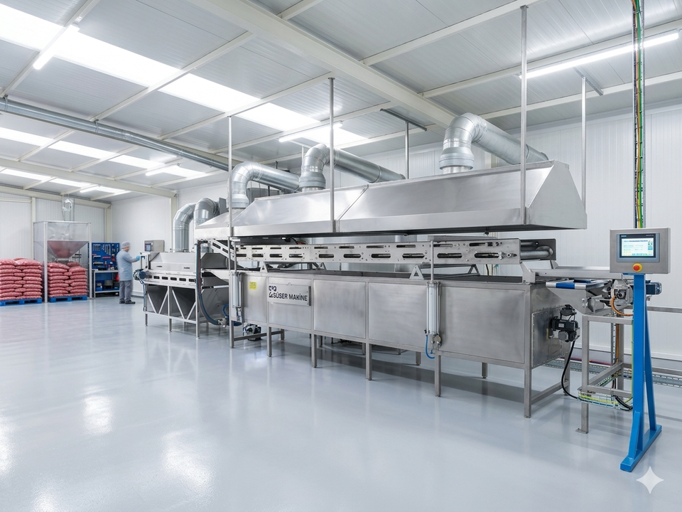 เครื่องทอดสแตนเลสแบบต่อเนื่อง / เครื่องทอดอาหารประเภทเม็ดมะม่วงหิมพานต์และข้าวโพด 900 กก./ชม. SUISER MAKINE