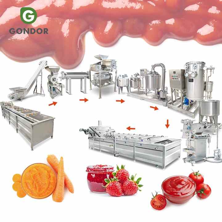 เครื่องผลิตซอสมะเขือเทศแบบอัตโนมัติสำหรับอุตสาหกรรมและครัวเรือน พร้อมระบบบรรจุกระป๋องแบบต่อเนื่อง