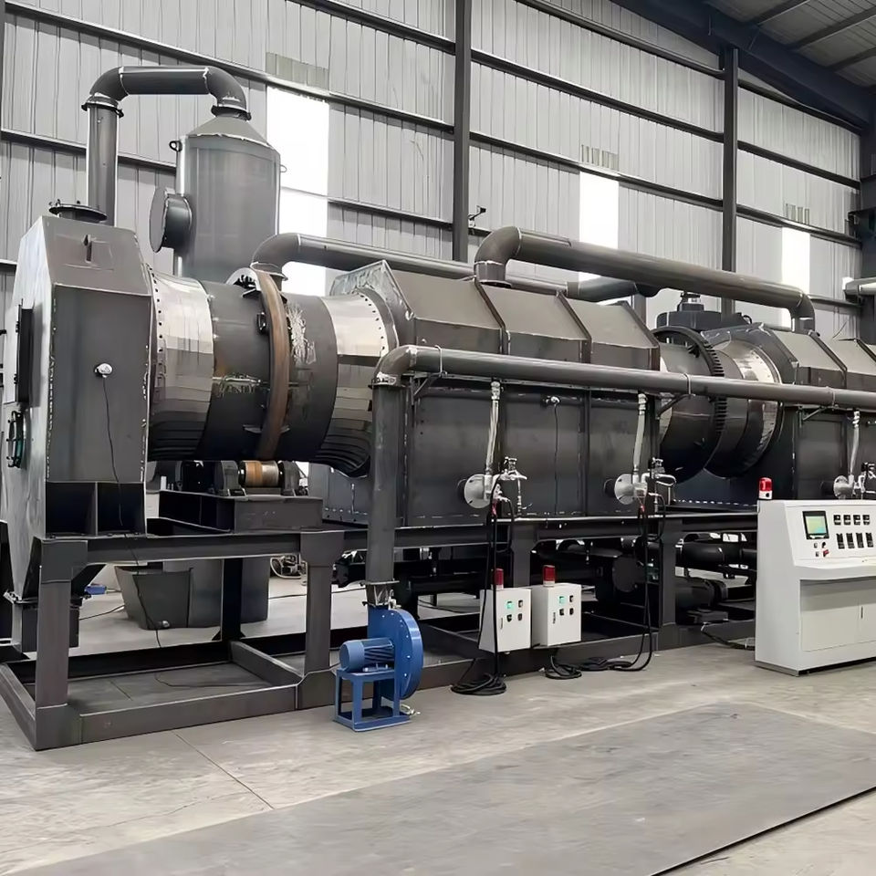 โรงงานรีไซเคิลชีวมวลแบบเตาเผาหมุนต่อเนื่อง ควบคุมด้วย PLC ปริมาตรใช้งานจริง 10 เมตร กำลังไฟ 102 กิโลวัตต์/ชั่วโมง แรงดันไฟฟ้า 220/110/380 โวลต์ กระบวนการคาร์บอไนซ์