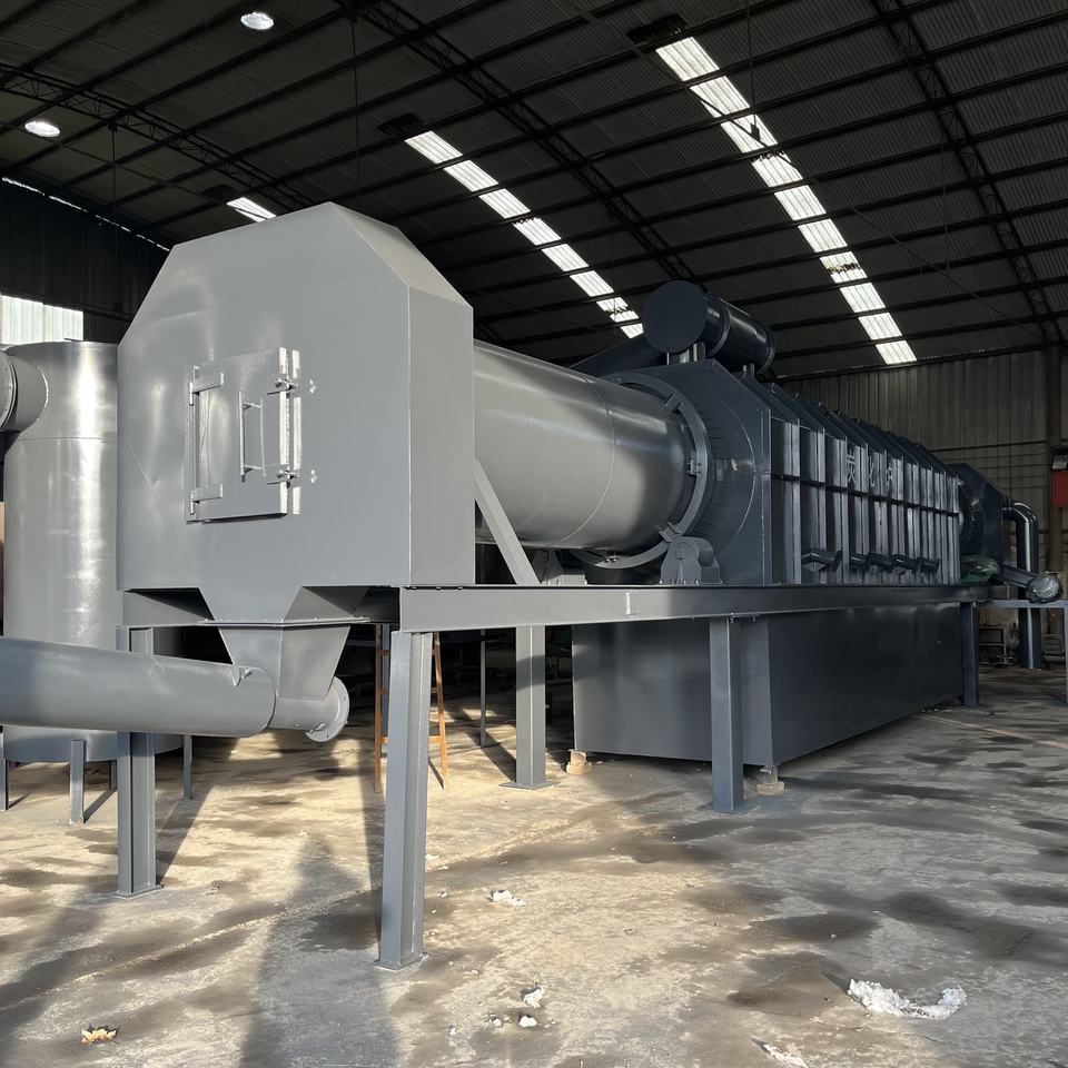 Continuous Straw Rice Husk Sawdust Biomass Carbonizing Roller Machine 300-1500kg Capacity 380V Motor Olive Tech