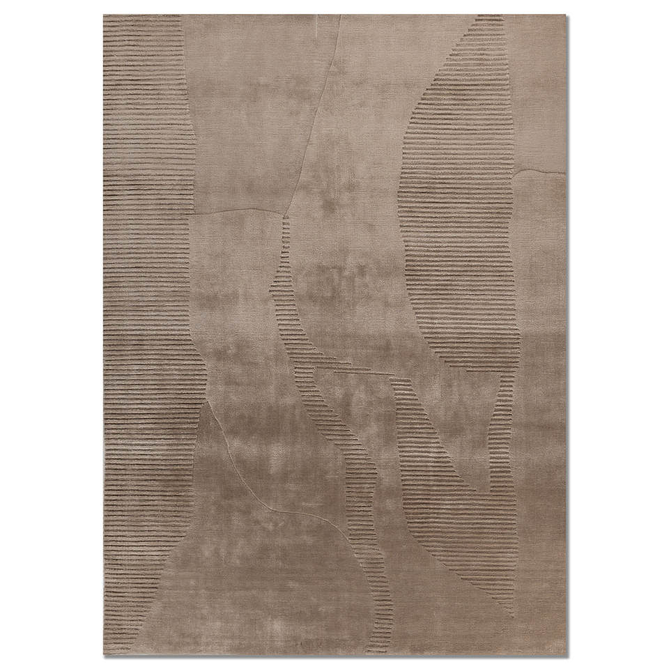 พรมทอมือลายเส้นโค้งสีเบจน้ำตาล ลายแบบนามธรรมทันสมัย สำหรับบ้าน ห้องนอน ห้องนั่งเล่น ห้องวัยรุ่น รูปทรงสี่เหลี่ยมผืนผ้า Hwt-85 ผ้าฝ้าย