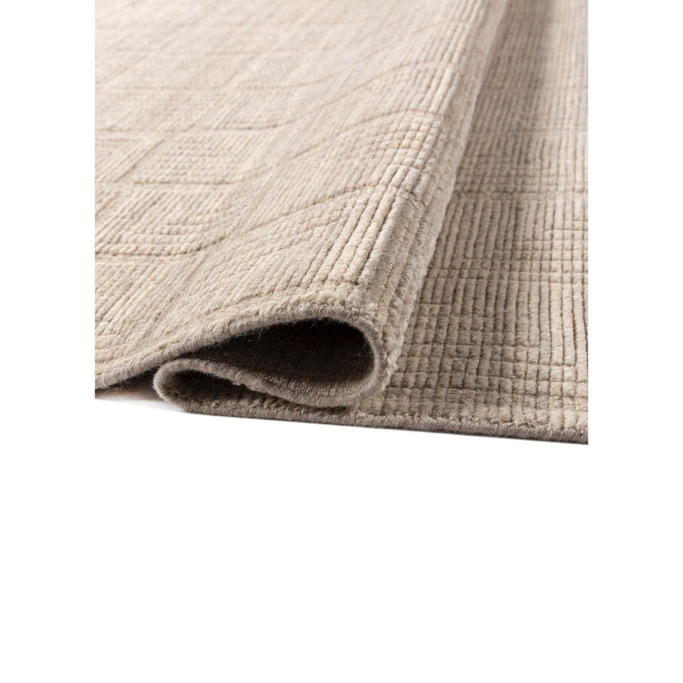 พรมขนสัตว์ทอมือลายเส้นโค้งสีเบจน้ำตาลขนาดใหญ่รูปทรงสี่เหลี่ยมผืนผ้าลายทางสามมิติสีพื้นสำหรับบ้าน ห้องโถง ห้องนั่งเล่น ห้องนอน-Hwl-350