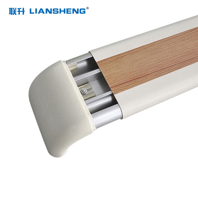 ราวจับอลูมิเนียมแบบโค้งพร้อมฝาครอบ PVC แข็งแบบด้าน ขนาด 140 มม. ราวจับติดผนังสำหรับโรงพยาบาล ป้องกันการกระแทก