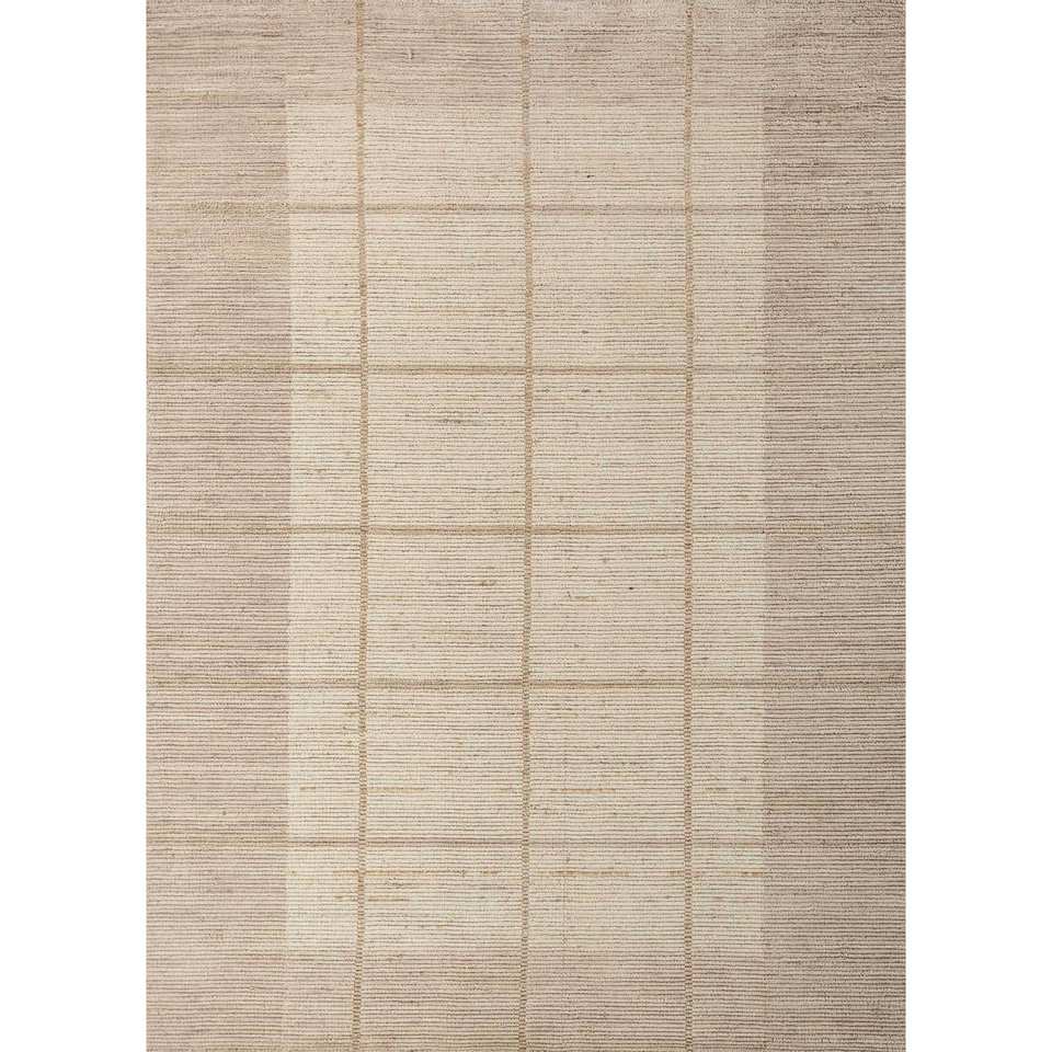 พรมขนสัตว์ทอมือลาย Contour Ivory ผ้าฝ้ายออร์แกนิก พรมปอกระเจาทำมือลาย Jacquard ลายทางสำหรับห้องโถง รูปทรงสี่เหลี่ยมผืนผ้า ขนาด 9x12 นิ้ว รุ่น Hwl-335