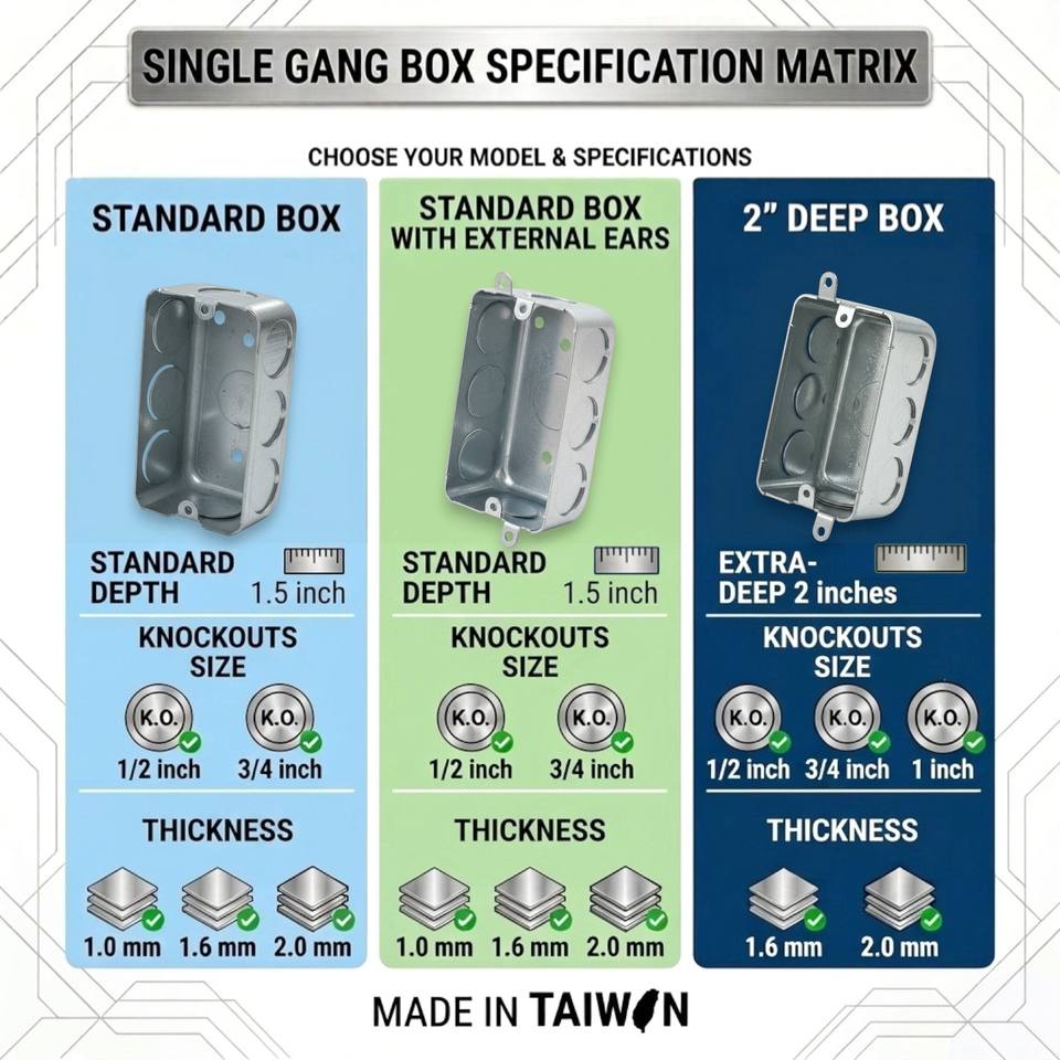 กล่องต่อสายไฟเหล็กชุบสังกะสี Contractor's Choice ขนาด 1/2" 3/4" พร้อมช่องเจาะติดตั้ง ป้องกันการกัดกร่อน ทนไฟ ทนทาน ความลึก 1.5 นิ้ว