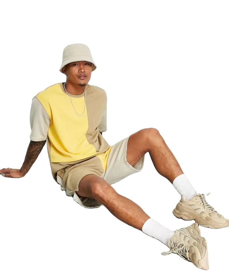 เสื้อยืดกางเกงขาสั้น2ชิ้นของผู้ชายเสื้อยืดผ้าฝ้าย100% กางเกงขาสั้นสีตัดกันสำหรับฤดูร้อนกำหนดเอง