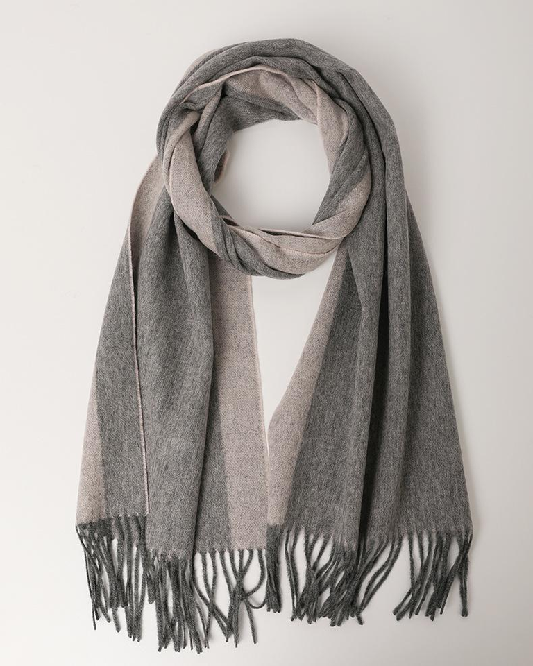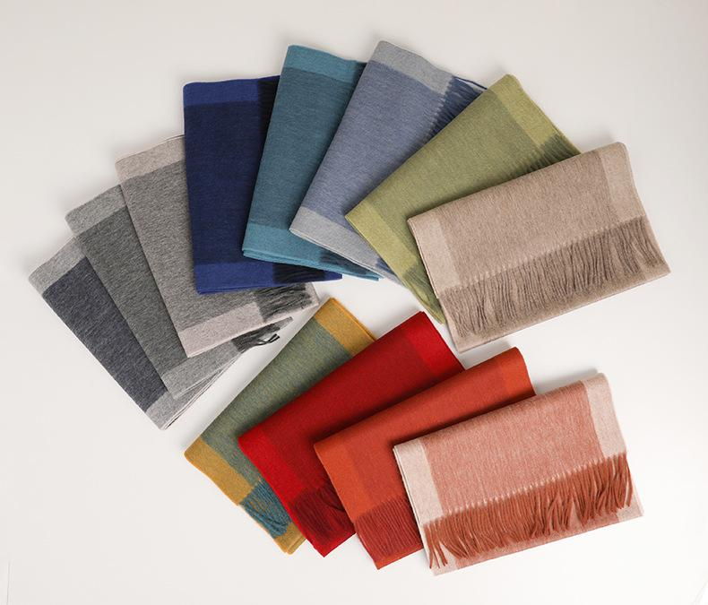 ผ้าพันคอแคชเมียร์สองสีแบบคอนทราสต์ ผ้าคลุมไหล่บล็อกสีแบบสั่งทำพิเศษ พร้อมพู่ตกแต่งทำมือ
