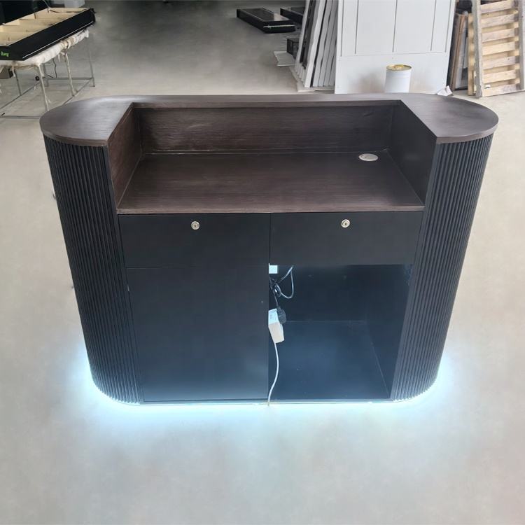 เคาน์เตอร์แคชเชียร์ร้านสะดวกซื้อ พร้อมสีและโลโก้ที่ปรับแต่งได้ วัสดุไม้อัด สำหรับใช้ในธุรกิจค้าปลีก