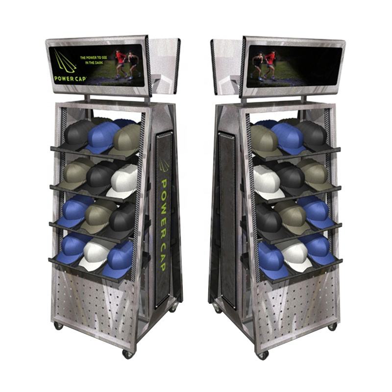 ชั้นวางหมวกโลหะพร้อมล้อแท่นวางพื้นสำหรับแสดงและจัดเก็บหมวกสะดวก