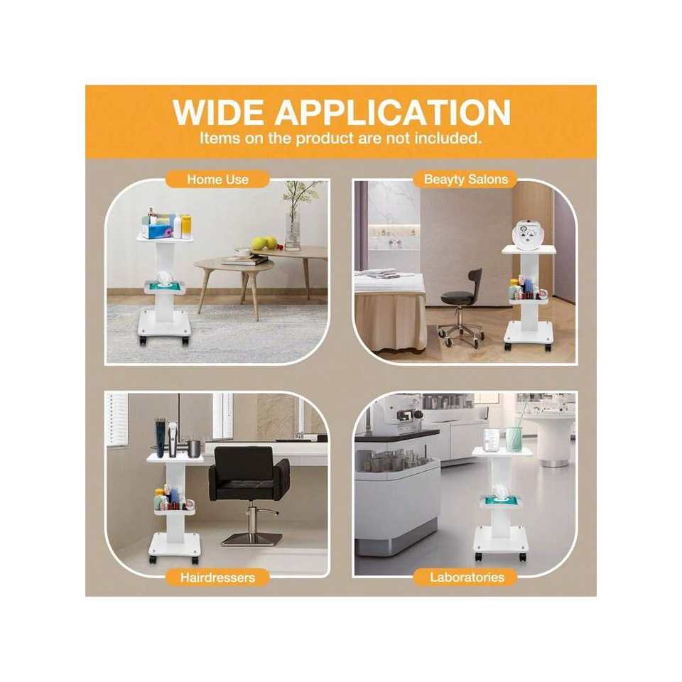 รถเข็นพลาสติกสีขาวพร้อมถาดใส่เครื่องมือเคลื่อนย้ายได้ง่ายรถเข็นพลาสติกสำหรับร้านทำผมใช้งานได้อเนกประสงค์ใช้งานสะดวก