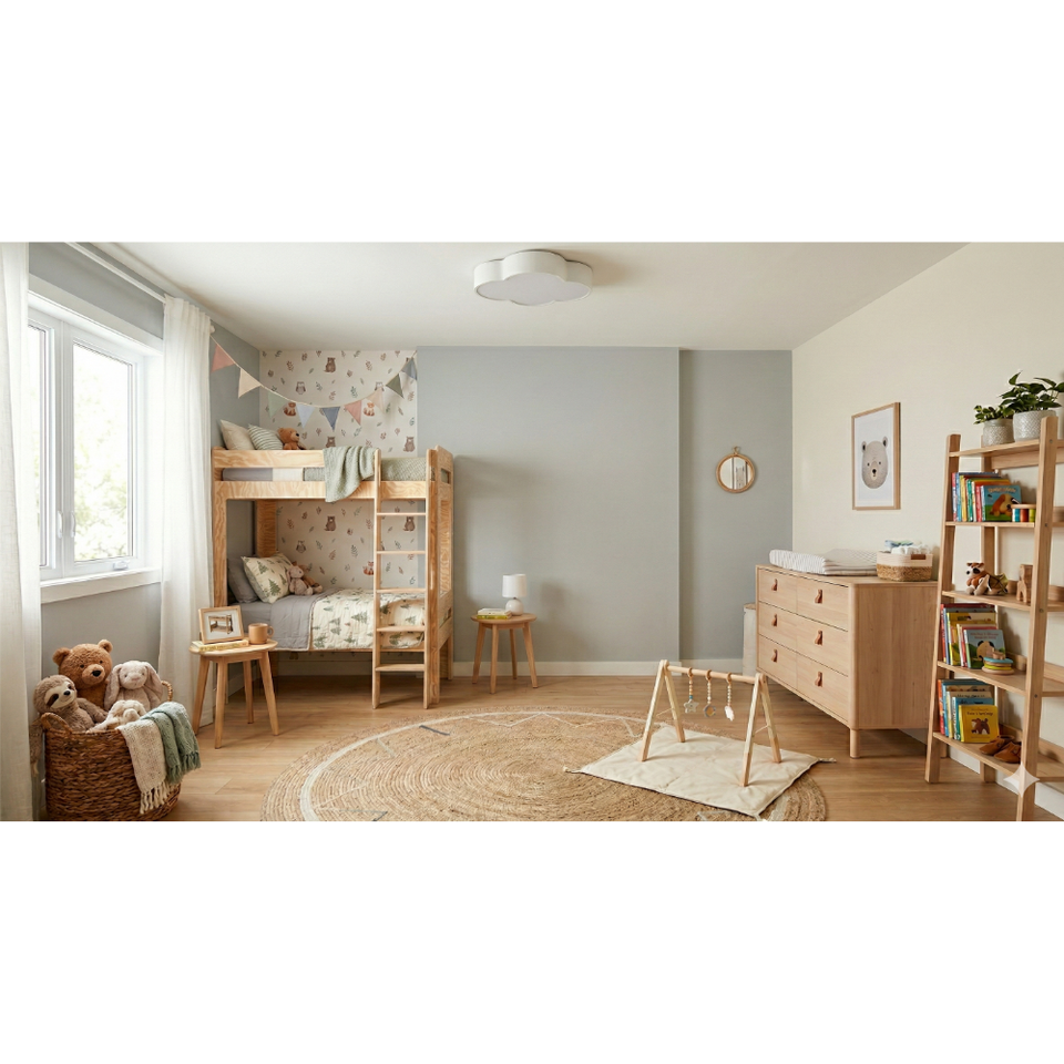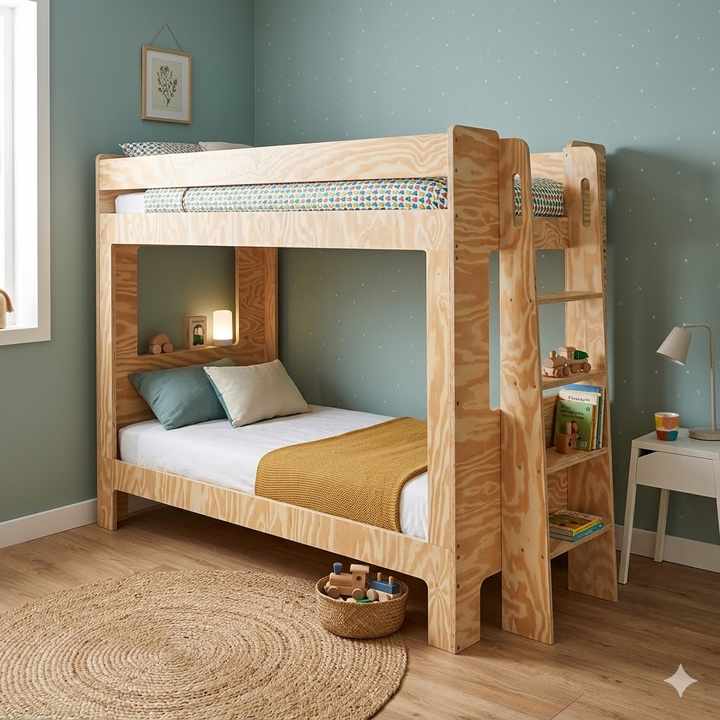 เตียงสองชั้นสำหรับเด็กแบบปรับเปลี่ยนได้ โครงสร้างไม้อัดสนอเมริกันที่ทนทาน ปลอดภัย ขอบเรียบเนียน ดีไซน์เรียบง่ายสำหรับห้องนอน