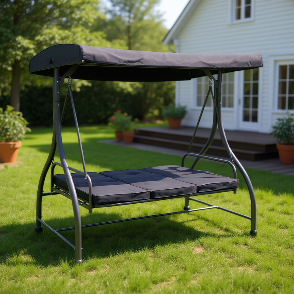 เปลญวนแบบเปลี่ยนรูปได้ 3 ที่นั่ง สำหรับใช้งานกลางแจ้ง พร้อมหลังคา สำหรับสวนและลานบ้าน โครงโลหะ ดีไซน์ร่วมสมัย