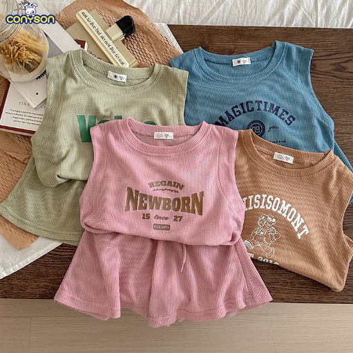 Conyson สูทแขนกุดสำหรับเด็ก, สินค้าใหม่เสื้อผ้าแฟชั่น Netflix 2024การ์ตูนเสื้อกล้ามชุดฤดูร้อน