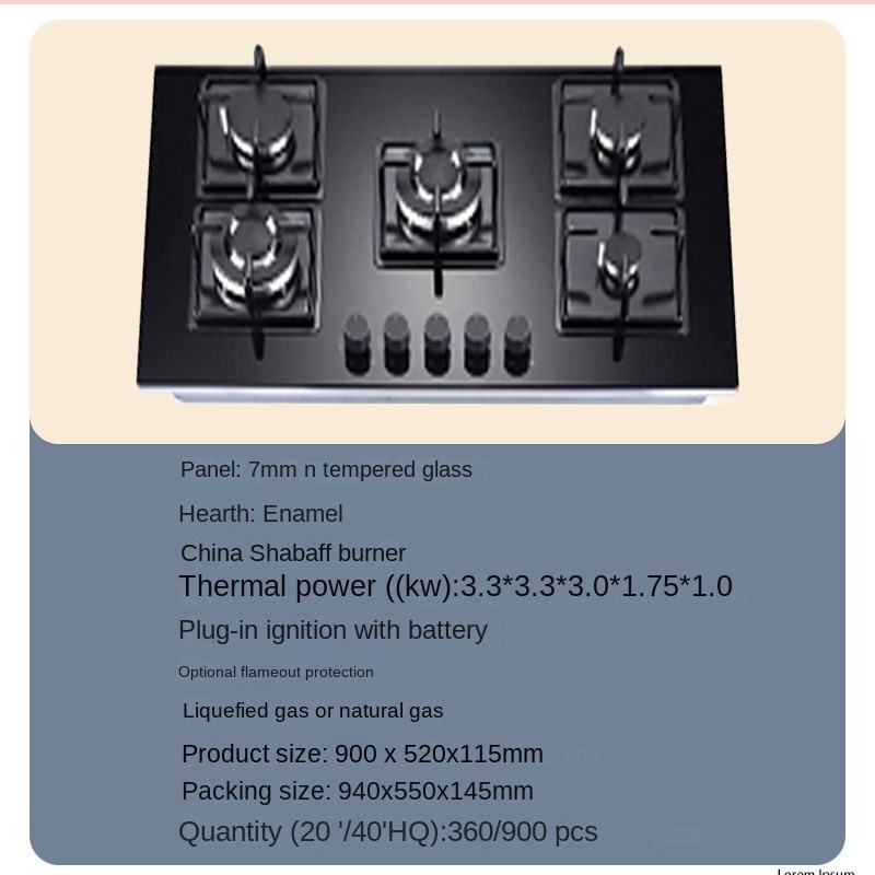 ชนิด:cooktops หลาย (Gas + ไฟฟ้า)